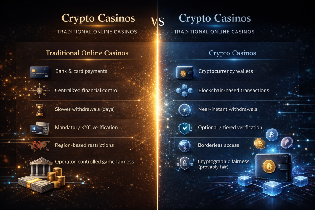 Structural Differences Between Crypto Casinos and Traditional Online Casinos